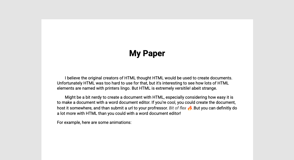 Animations are a great way to make your page stand out and feel more interactive. To create one you specify the style of the element at each keyframe below (you can skip keyframes). You can then apply this to an elements 'animation'.